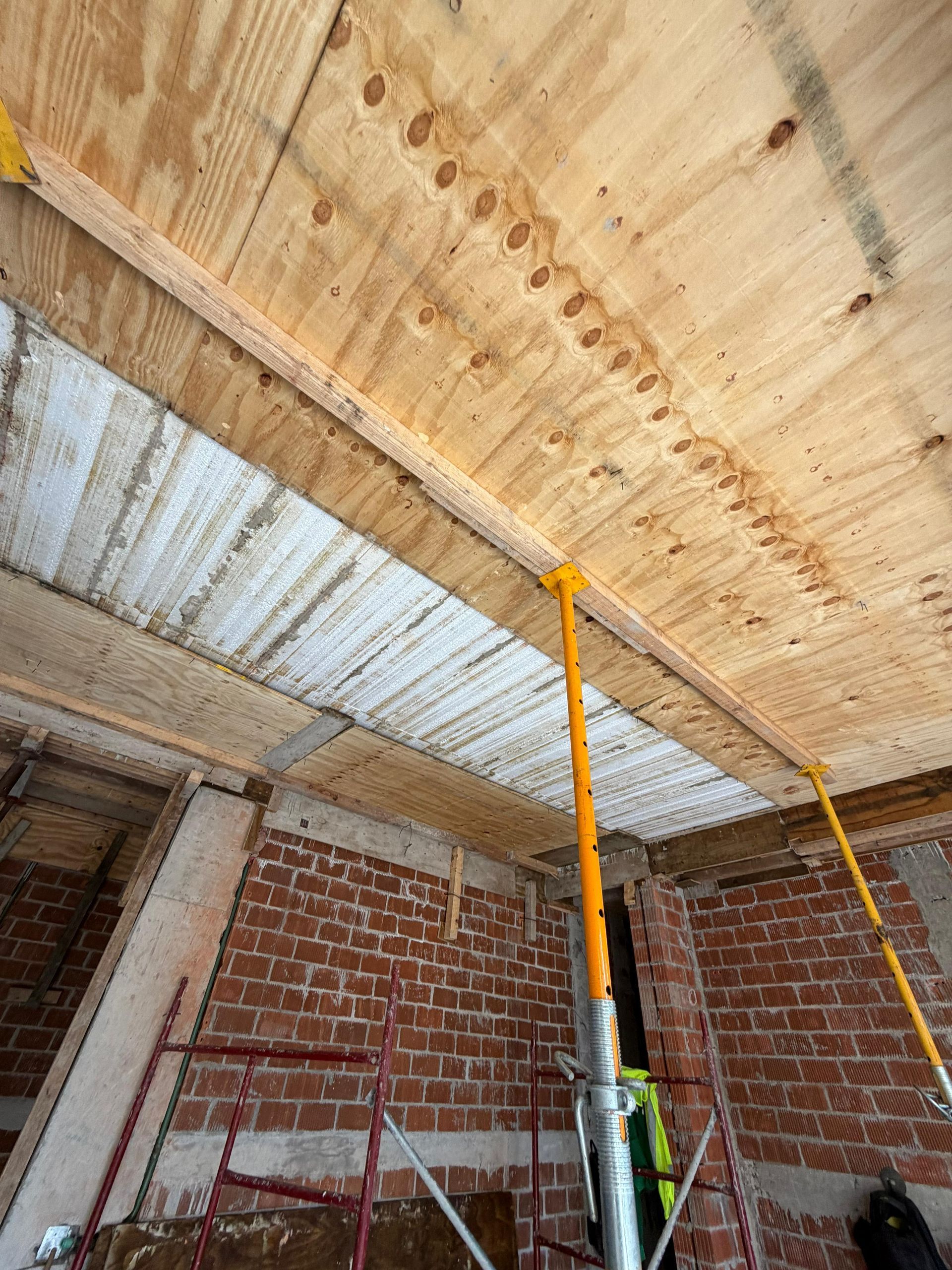 Pared de ladrillo con llana aplicando mortero.